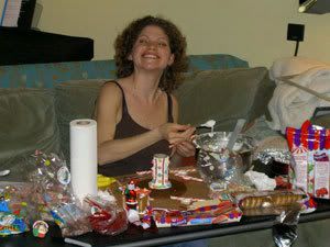 Rock on. Last year it was me with gummy coke bottles up my nose. I'm so proud of Lisa for carrying on this year with dual nostril candy cane poles plus the lipped arch. Nice.